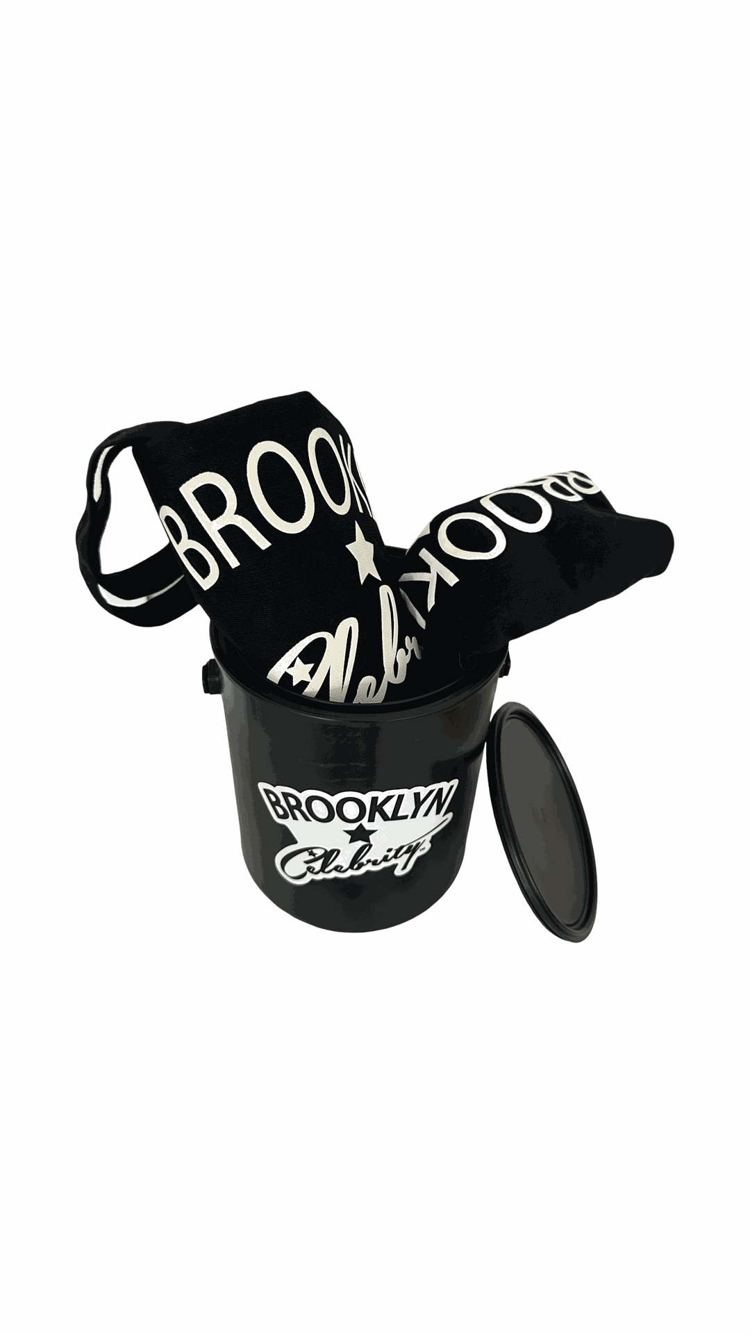 Get the tote, tee, and a sweet 4x2" magnet bearing the Brooklyn Celebrity logo, all tucked into a plastic paint pail. A multipack of Bk Celeb items all in one-give the gift of merch to anyone, including yourself!
